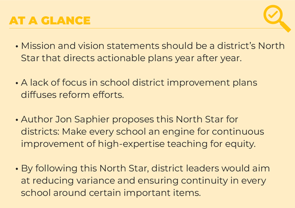 We need a North Star for district improvement plans. Are big-picture vision statements in strategic plans useful? They could be if they served as a North Star, year after year, to direct actionable plans.
