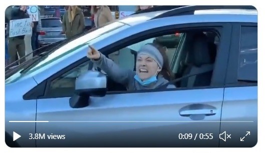 Above: The debate over keeping schools closed became highly politicized and dominated by fear and anger. When views conflicted, emotions rose to painful levels: Teacher suspended for screaming, gesturing at anti-lockdown protesters in Bend.