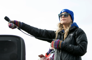Above: A member of the Minneapolis Federation of Teachers during a recent teachers strike.