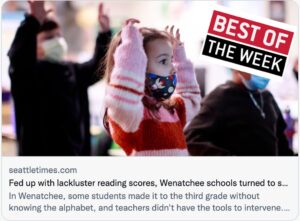 🏆 BEST: The best story of the week is Fed up with lackluster reading scores, Wenatchee schools turned to science by Dahlia Bazzaz in the Seattle Times. In it, Bazzaz looks at one district’s turn to a structured literacy reading model, which includes phonics, partly in response to a state law requiring dyslexia testing for K-2 students. The results so far are promising. Reading scores are rising faster than usual. At the student level, teachers and parents are seeing the results too. One third grader who wasn’t much of a reader a year ago is now tackling 200-page chapter books and reading — and comprehending — above grade level. Literacy and approaches to teaching it are hot-button issues in education, but this story does a good job of looking past the politics and reporting on what the data shows. A second story by former Seattle Times Ed Lab editor Joy Resmovits looks deeper into the structured literacy model.
