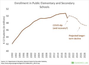 Above: Looking at this USDE map showing projected student enrollment, it seems clear we’re in a kid shortage as much as we’re in a teacher shortage. (H/t Chad Aldeman.)