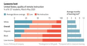 | Above: Chart from a recent Economist article on the poor quality remote instruction Black and low-income kids have been receiving while schools are shut down. ⏰ Don’t miss the deadline this Sunday to apply for the Solutions Journalism Network grant for reporting on schools in the pandemic. They are looking for reporting that “examines immediate responses that essentially adapt the existing education system to the logistical demands of the pandemic.” We need more stories about effective innovations. More info here.