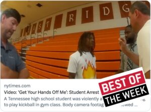 The best story of the week is the New York Times’ ‘Get Your Hands Off Me’: Student Arrest Puts Role of School Police Under Scrutiny, by By Kassie Bracken, Nailah Morgan, Mark Boyer, and Elliot deBruyn.