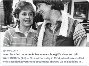 Dramas over the mishandling of classified government documents aren’t all new, notes the Associated Press. In 1984, 13-year-old Kristin Preble brought a briefcase of classified papers that her dad had found in a Cleveland hotel room years earlier to school for show-and-tell.