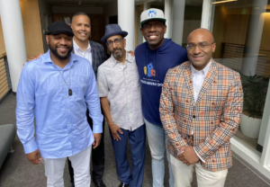 Above: American Public Media special correspondent Lee Hawkins, right, stands with Black male educators in Minneapolis.