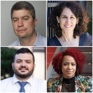 Above, clockwise from top left: Education Week’s Benjamin Herold, the New York Times Magazine’s Susan Dominus and Nikole Hannah-Jones, and the Texas Tribune’s Brian Lopez.