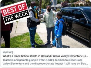 🏆 BEST: The best story of the week is What’s a Black School Worth in Oakland? Grass Valley Elementary Community Braces for 2nd Closure in a Decade by Vanessa Rancaño in KQED, her last story on the education desk before she moves onto another beat. In February, the Oakland Unified School District voted to close or consolidate 11 schools, including Grass Valley, which enrolls the district’s highest share of Black students at 65%. Rancaño goes deeper than the outrage headlines and finds out exactly what this will mean at the individual student level. She tells us she spent three days on campus to report the story, and it shows. Officials say under-enrollment and poor test scores are reasons for the closure, but Rancaño reports that the school shows up for students in less tangible, but perhaps more important ways. One parent transferred his son from a school with hardly any Black students to Grass Valley and immediately noticed a difference in his mood and attitude toward school: “Seeing the joy when he walks out that door, it’s everything to me,” he said.