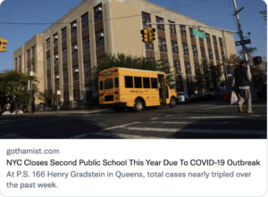 Above: Let me fix that headline for you: “Two months into citywide reopening, 2 of 1,800 NYC schools have been temporarily closed.”