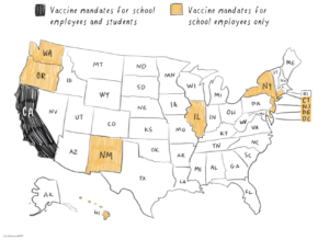 Above: Vaccine mandates for school staff are still few and far between, according to this new NPR story.