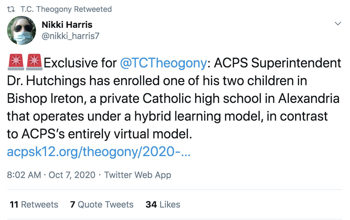 | These high school journalists in Alexandria, Virginia, are making waves with this story about their public school district superintendent sending his kids to private schools for hybrid learning. Congratulations to the staff of the T.C. Theogony! |