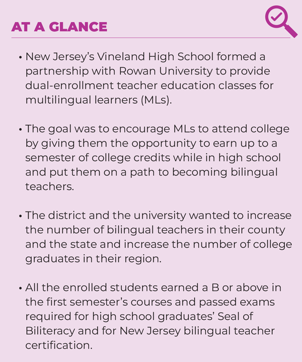 A New Jersey high school created a dual-enrollment program for multilingual learners that encourages them to attend college and become teachers.