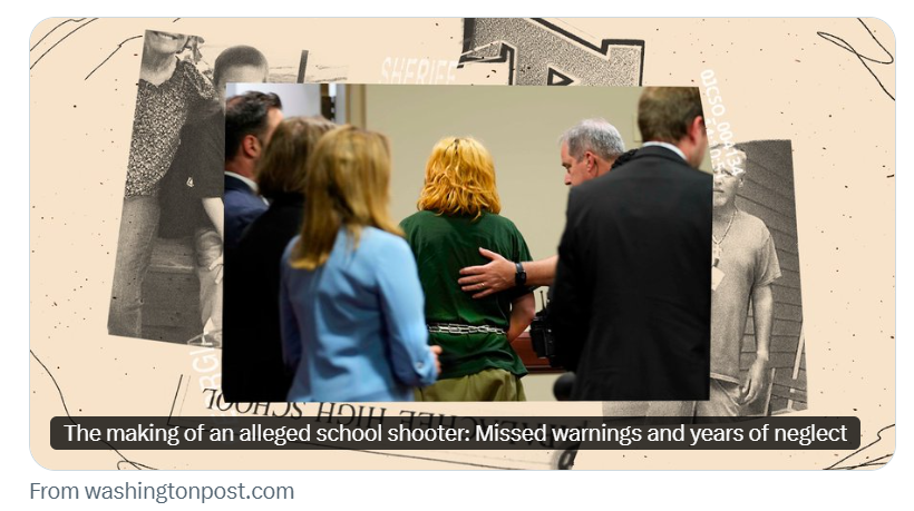 Above: The making of an alleged school shooter: Missed warnings and years of neglect, from the Washington Post.