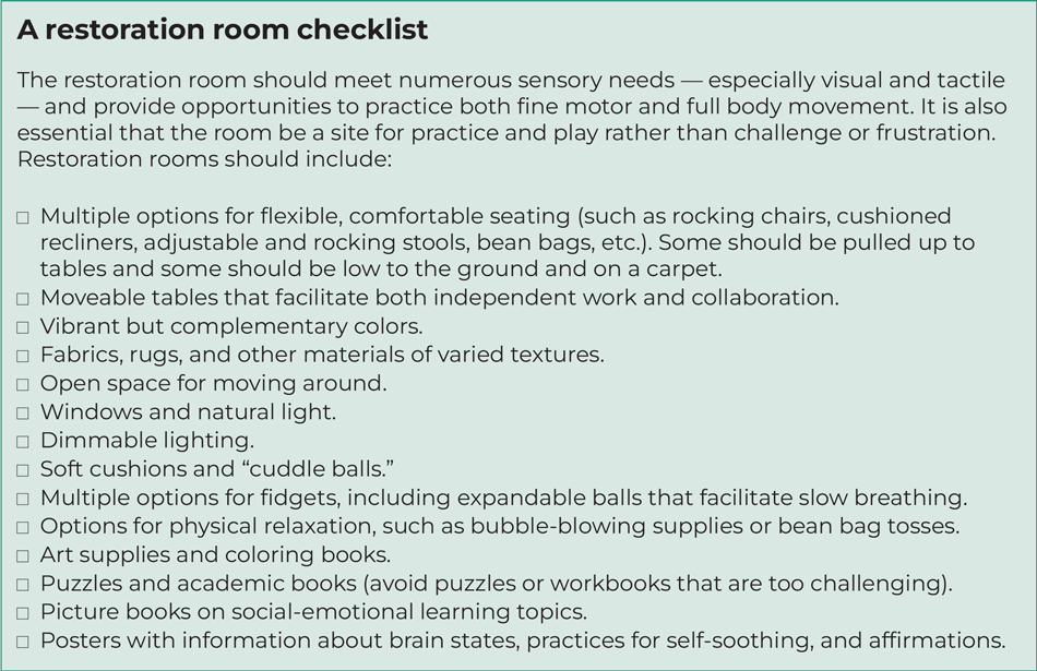 School-based restoration rooms can help ease stress and lessen the impact of trauma for students and teachers.