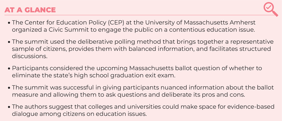 How, then, can we foster consensus-oriented practices in an era of extreme partisanship, especially as it pertains to how we design, support, and sustain our public schools? Disagreement is inevitable and often productive, but only if people are willing to hold less rigidly to their positions and leave room for understanding others’ views. Even if we continue to differ in our opinions, is it possible to establish common ground when it comes to how best to educate our children in and for democracy?