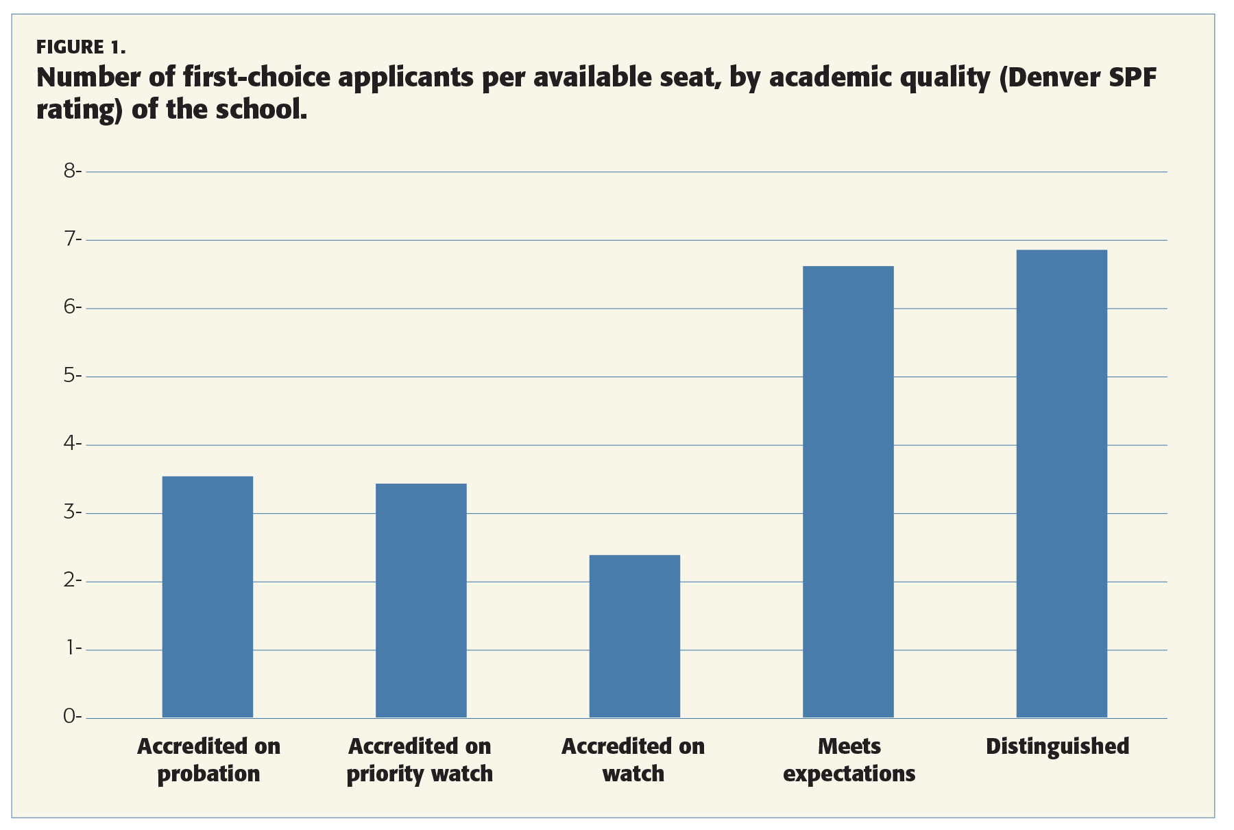 Researchers measured school demand using the number of first-choice applicants per available seat. Demand-per-seat ranged from less than 1 to 40.