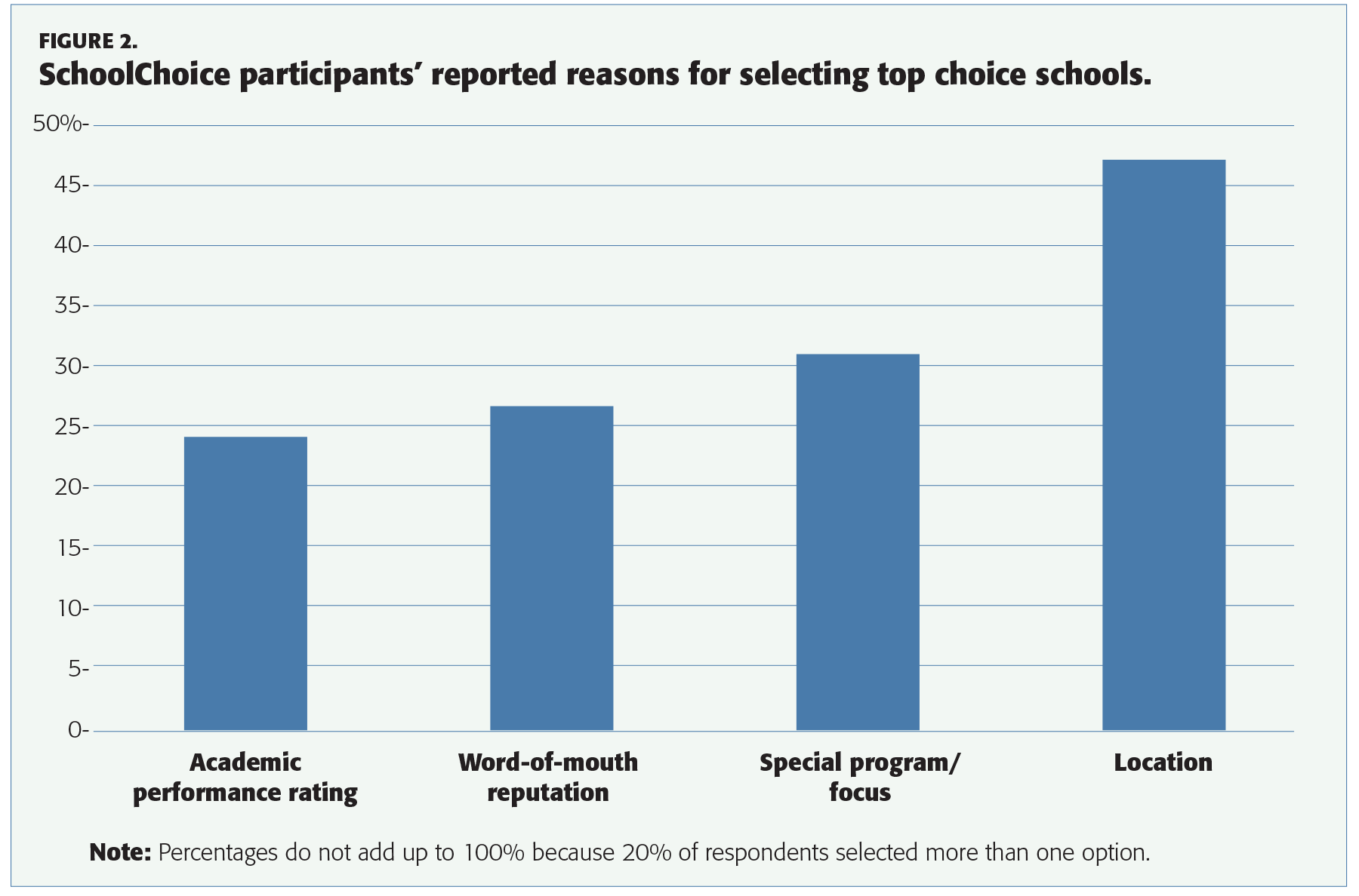 However, these parent choices did not drive future school improvement by prioritizing schools with the highest academic quality. At the school level, academic quality was the best predictor of demand, but there was also substantial demand for lower-quality schools. However, when researchers turned to the survey questions, academic quality was the least popular reason families offered for selecting their first-choice schools.