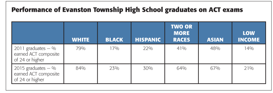 The fact is, income gaps are widening, and gaps in academic achievement persist. Across the United States, gaps of between 25 and 30 points in reading and mathematics between whites and blacks and between whites and Hispanics have been consistent from 1992 to 2013 (Kena et al., 2014). These gaps contribute to opportunity gaps — and Evanston Township decided to do something about it.