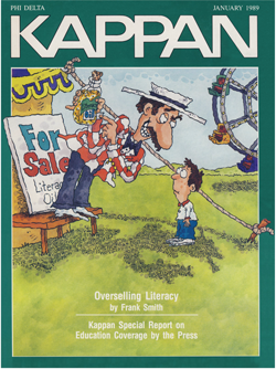 This grim depiction of the teaching profession was not limited to the 1960s. In a pair of special reports in 1989 and 1990, Kappan authors bewailed the image of schools presented in the mass media. In the January 1989 report, Patrick McQuaid (“A story at risk: The rising tide of mediocre education coverage”) explained that education stories, even potentially positive ones, seemed to skew negative: