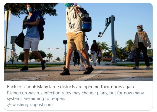 If you and your readers are getting tired of anecdotal coverage, it might be time to try a roundup or a big think piece, says the Wall Street Journal’s Chastity Pratt. “Grinding it out, doing roundups, and then giving national looks: That tends to be the natural progression,” says Pratt, who recently edited a piece about districts moving toward in-person instruction (below). “You have to do the daily story about the numbers, but then you have to tell people what it means.”