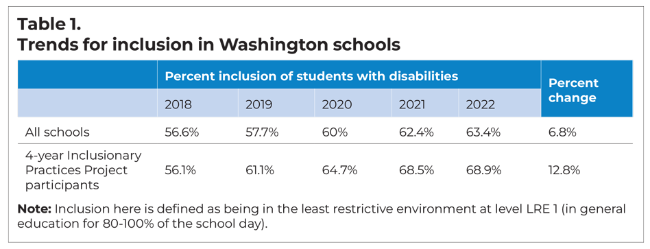 A Washington state program demonstrated significant progress in promoting inclusive education in participating districts.