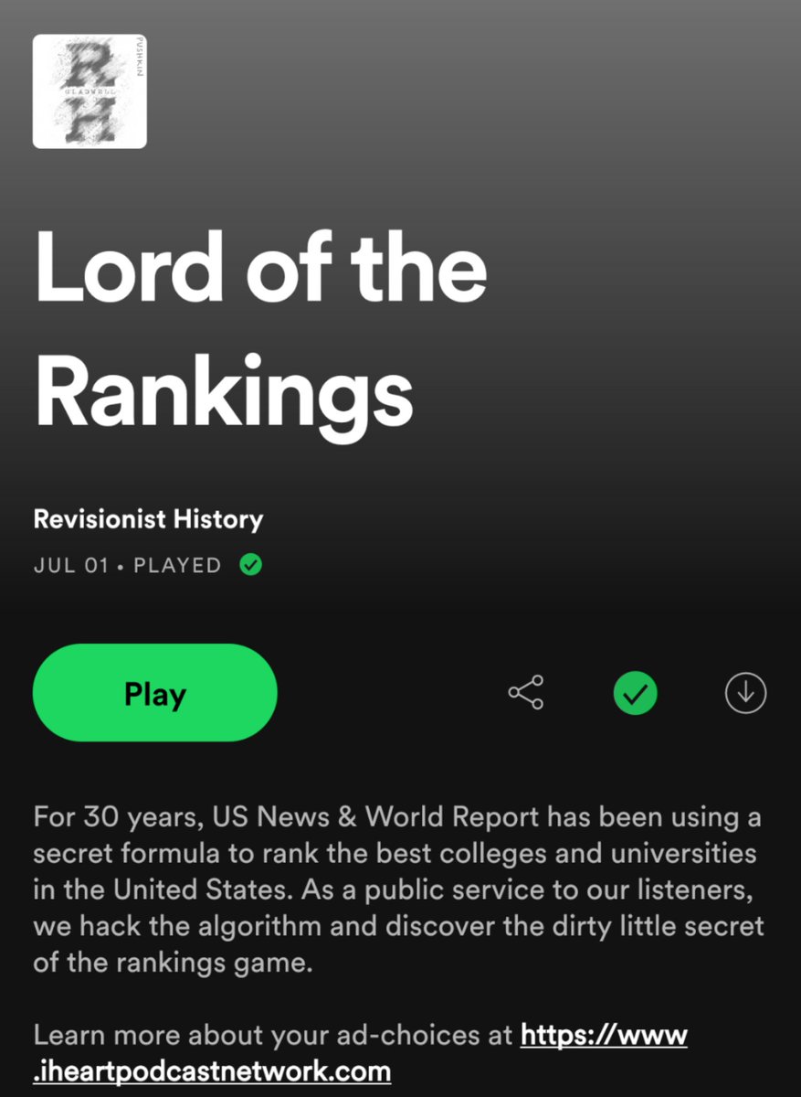 Above: Malcolm Gladwell’s recent podcast episode, Lord of the Rankings, a critique of the US News & World Report college rankings.