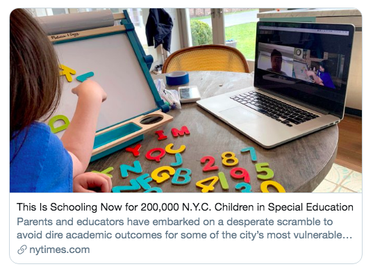 There are some honorable mentions as well, with Politico NY education reporters Madina Touré and Nick Niedzwiadek writing about the 6,000-student KIPP closing its doors and moving classes online before public schools did. This article is one of the rare non-public school pieces from these past several weeks.