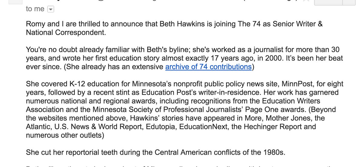 💯 Longtime journalist Beth Hawkins announced she was joining The 74 as the outlet’s first-ever national correspondent. Read the announcement here.
