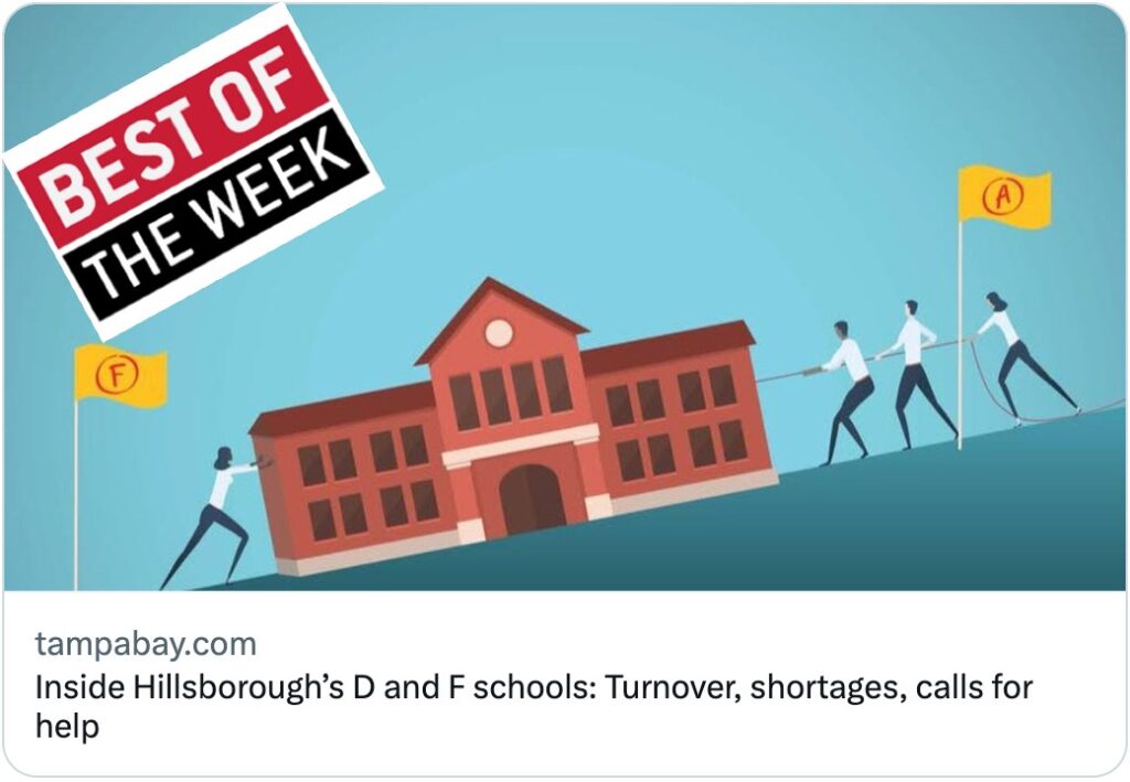 The best education journalism of the week is Inside Hillsborough’s D and F schools: Turnover, shortages, calls for help by the Tampa Bay Times’ Marlene Sokol and Ian Hodgson.