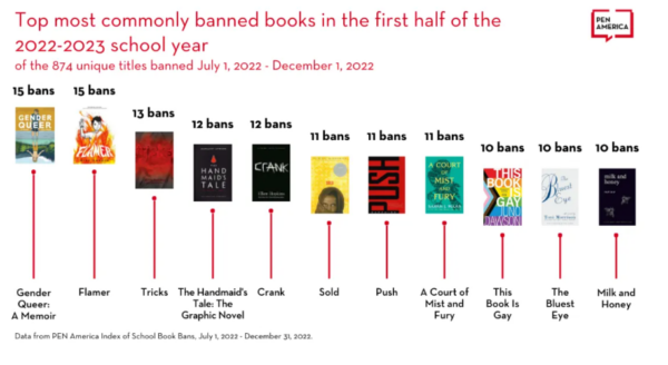 Above: Bookriot’s graphic of the most-banned books in 37 states so far, based on the new PEN America report.