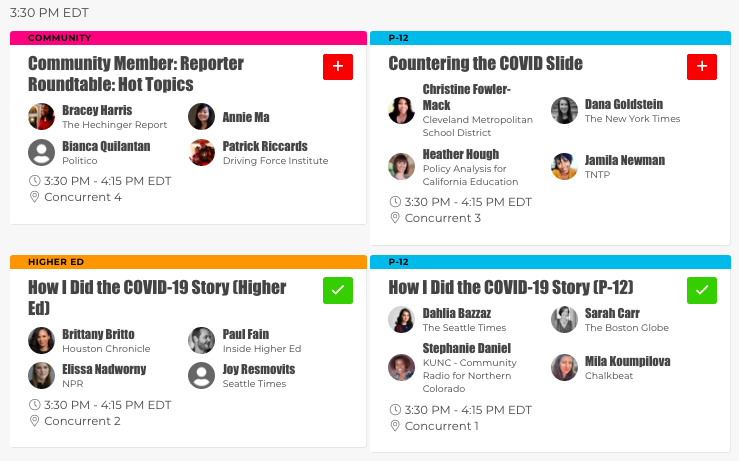 *There are several good options at 2:30, including panels moderated by KQED’s Ki Sung (on hybrid programs), NPR’s Anya Kamenetz, NPR (on SEL), and Chalkbeat’s Jason Gonzales (on higher ed).