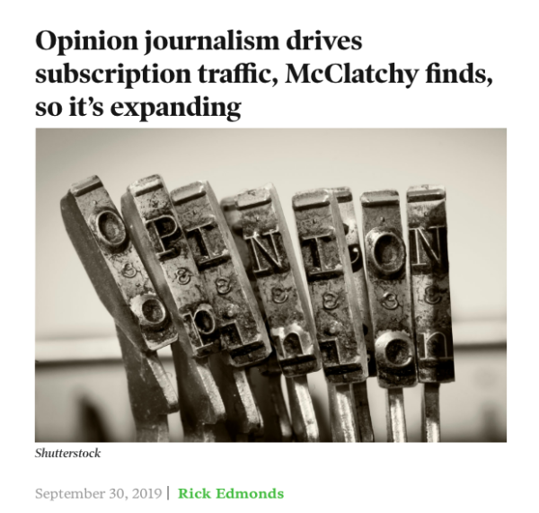 Poynter’s Rick Edmonds explained the media shift towards opinion in this recent piece.