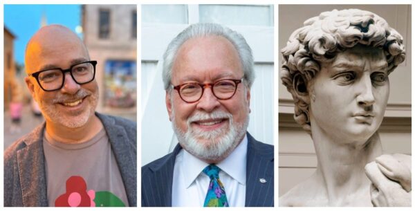 “My willingness to pick up the phone and cold-call someone is my one remaining advantage over younger, better journalists,” says Slate’s Dan Kois (left) about his viral interview with a conservative Florida charter school board chair (center) upset when parents weren’t warned their children would be viewing Michelangelo’s David (right). “Don’t tell them.”