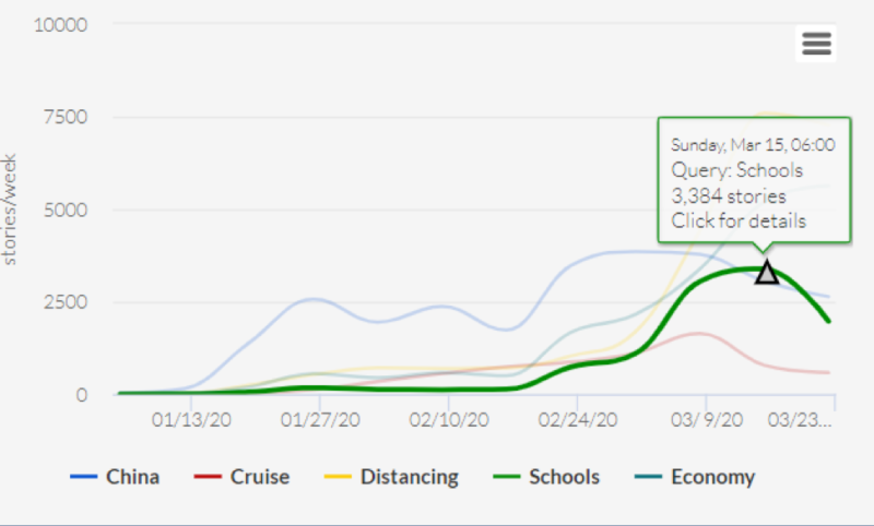 After that, there was no immediate surge in the number of stories written about the virus and its relations to schools.