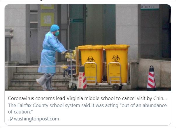 The first mainstream education-related COVID-19 story that we’ve been able to find was this early January Washington Post story about a canceled student exchange program (above).