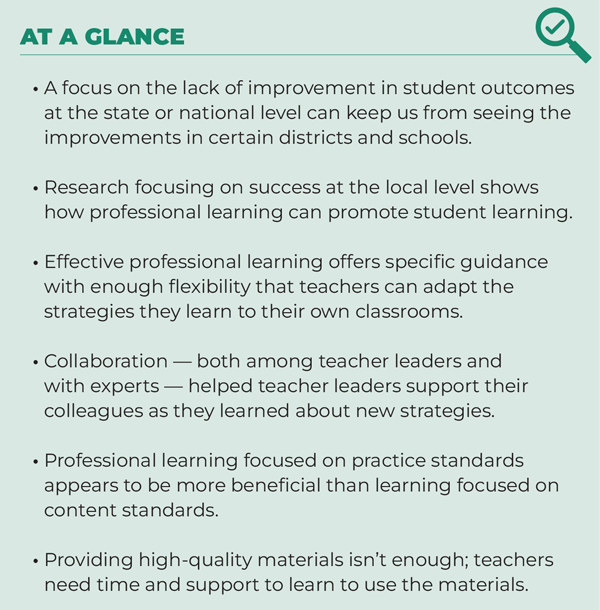 Specific professional learning strategies helped some teachers, schools, and districts succeed in bringing about the gains in student learning that standards were intended to foster.