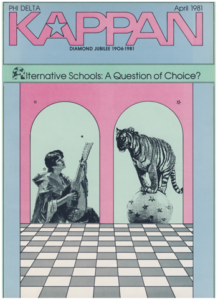 The April 1981 issue, titled “Alternative schools: A question of choice?,” devoted multiple articles to the alternative schools movement, which had emerged in the 1960s. In her retrospective (“The first decade of public school alternatives”), Mary Anne Raywid noted that these schools first took root outside public education but eventually inspired schools within public school districts to try out more humanistic and countercultural approaches to meet students’ needs. Raywid explained that the 1974 publication of David Tyack’s The One Best System lent support to the idea that, given the diversity of student needs, more options should be available: