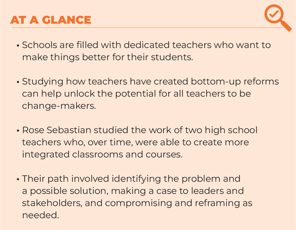 Schools are filled with dedicated teachers eager to make change for their students. Understanding how change-making teachers have succeeded can help smooth the way for others.