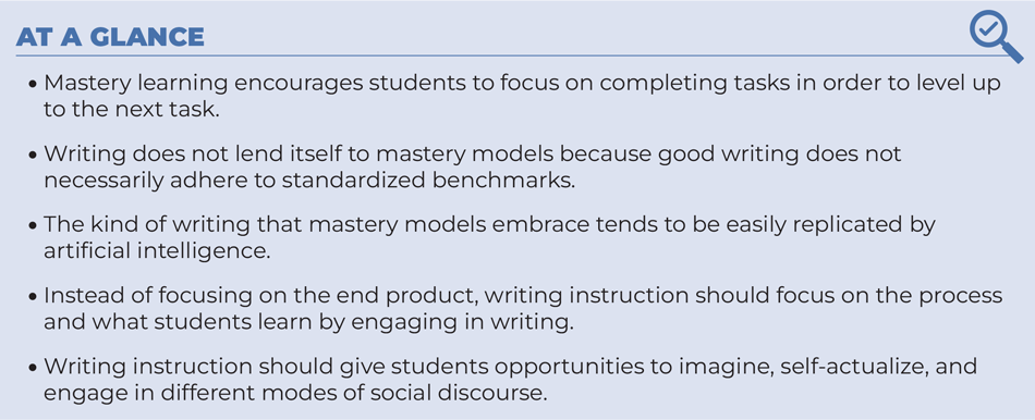 In rejecting mastery, we reframe English education away from what will become meaningless composition work in the face of AI and instead treat writing as the art that it is.