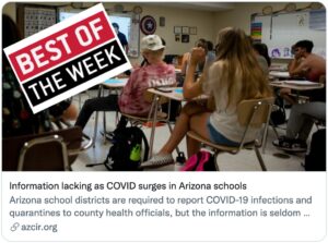 🏆 BEST: The best story of the week is Public information lacking as COVID-19 surges in Arizona classrooms by Maria Polletta and Shaena Montanari of the Arizona Center for Investigative Reporting. The reporting duo sheds light on a confusing and seemingly unorganized system of data collection and notification when children become infected with COVID-19. As a result, parents are left with a patchwork of information and few clues as to where children contracted the virus (at school or elsewhere). “While districts report infection data to county health officials, who in turn submit it to the state, that information is seldom relayed back to the public in an accessible, thorough way,” they write. Just 30% of the state’s 215 districts provide public-facing dashboards to track outbreaks by school. But this issue is not unique to Arizona. While reports of case counts without proper context can raise alarm unnecessarily, the data that does exist should be easy to access and distributed widely. Kudos to Polletta and Montanari for scrutinizing such an important piece of the pandemic puzzle.