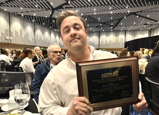“I’m so grateful to the members of AERA for conferring this tremendous honor,” says The 74’s Kevin Mahnken (above). “And also for politely not bringing up the fact that I forgot my blazer back in Washington.”